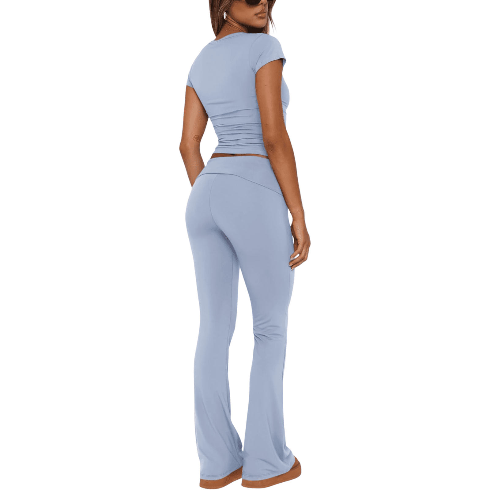 - Sadržaj seta: Kratki top kratkih rukava i hlače s proširenim nogavicama