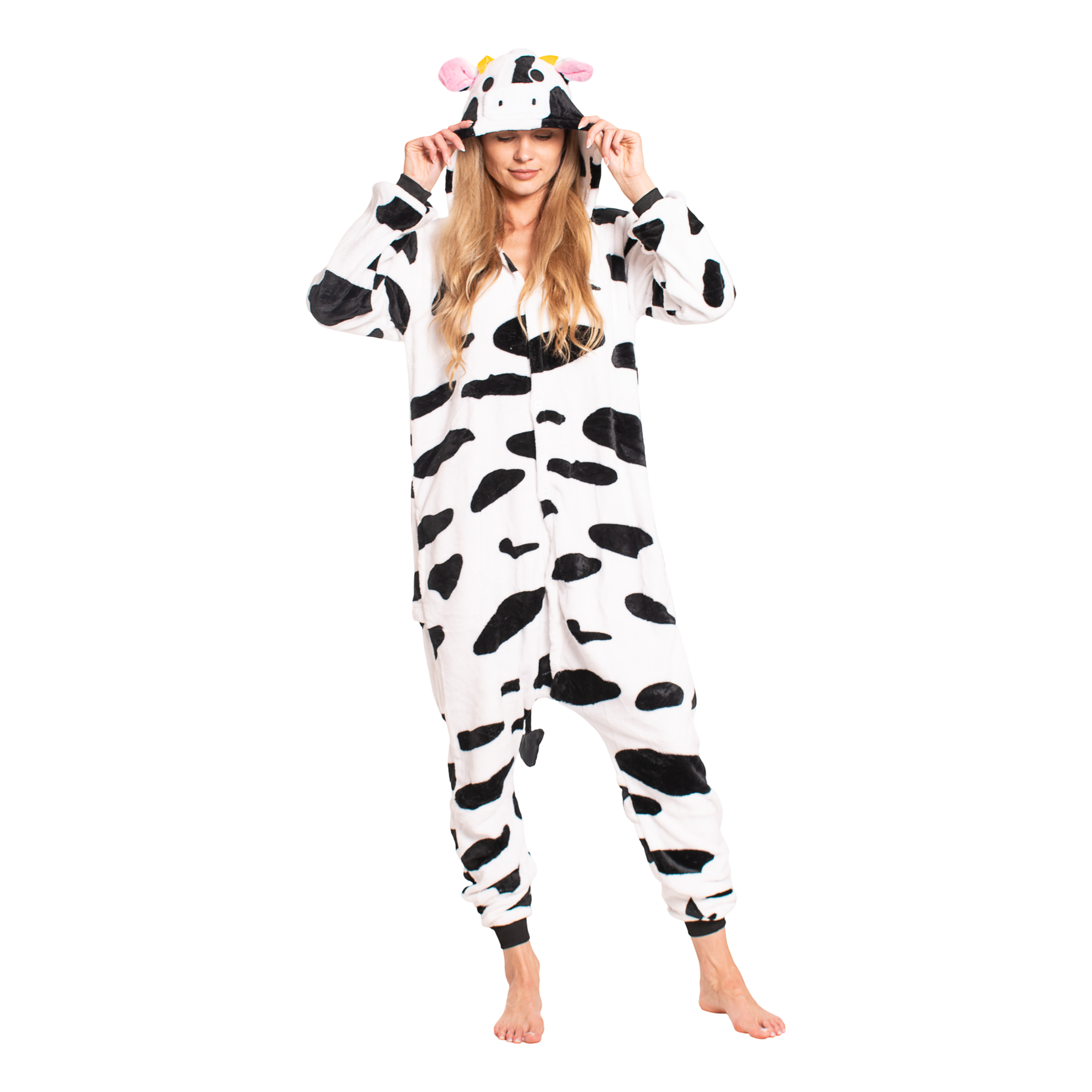 Ženska jednodijelna pidžama Kigurumi Onesie kostim krava bijelo-crna 175–185 cm XL