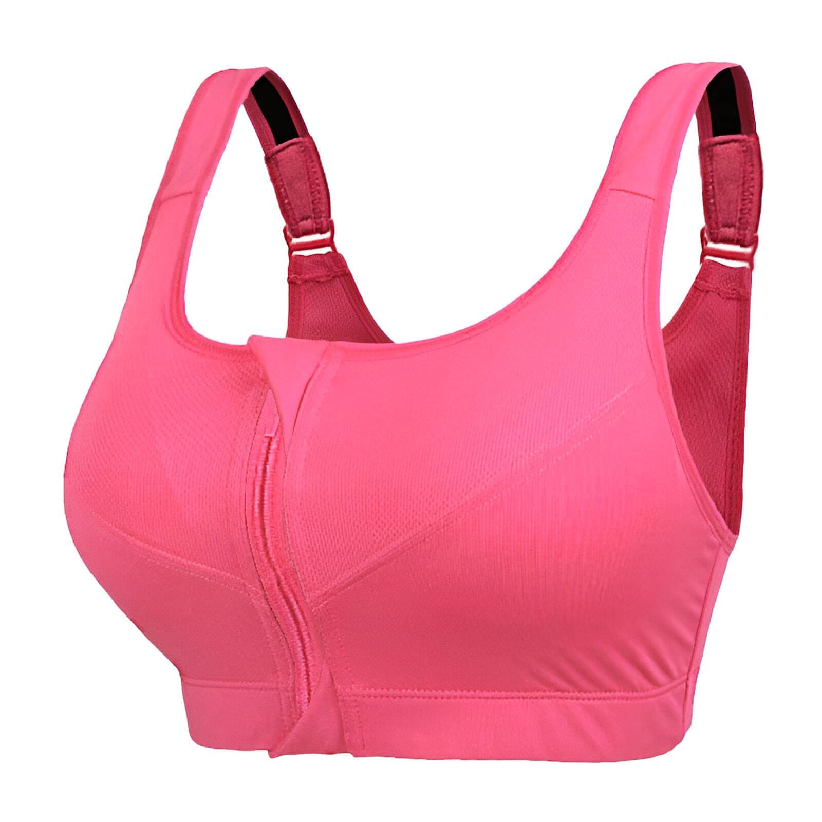 Nikcorp Sportski grudnjak Crop Top Plus Size s prednjim patentnim zatvaračem, visoka potpora, ružičasti, veličina 4XL