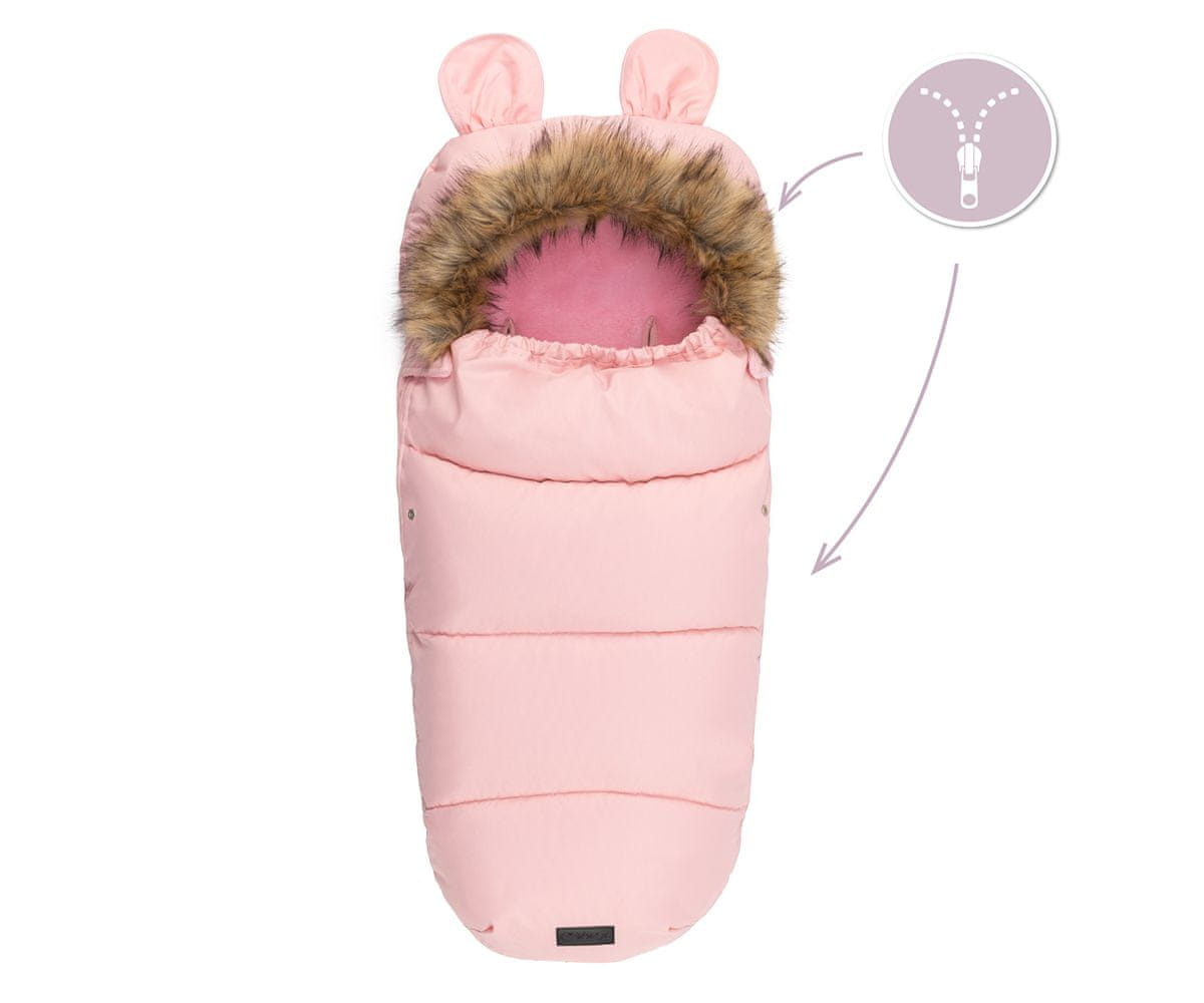 MoMi SLEEPING BAG vreća za spavanje, izo, vodootporna, zaštitna, univerzalnog oblika, krzno na skidanje, patentni zatvarač, otvori za pojas, 95x45cm, roza