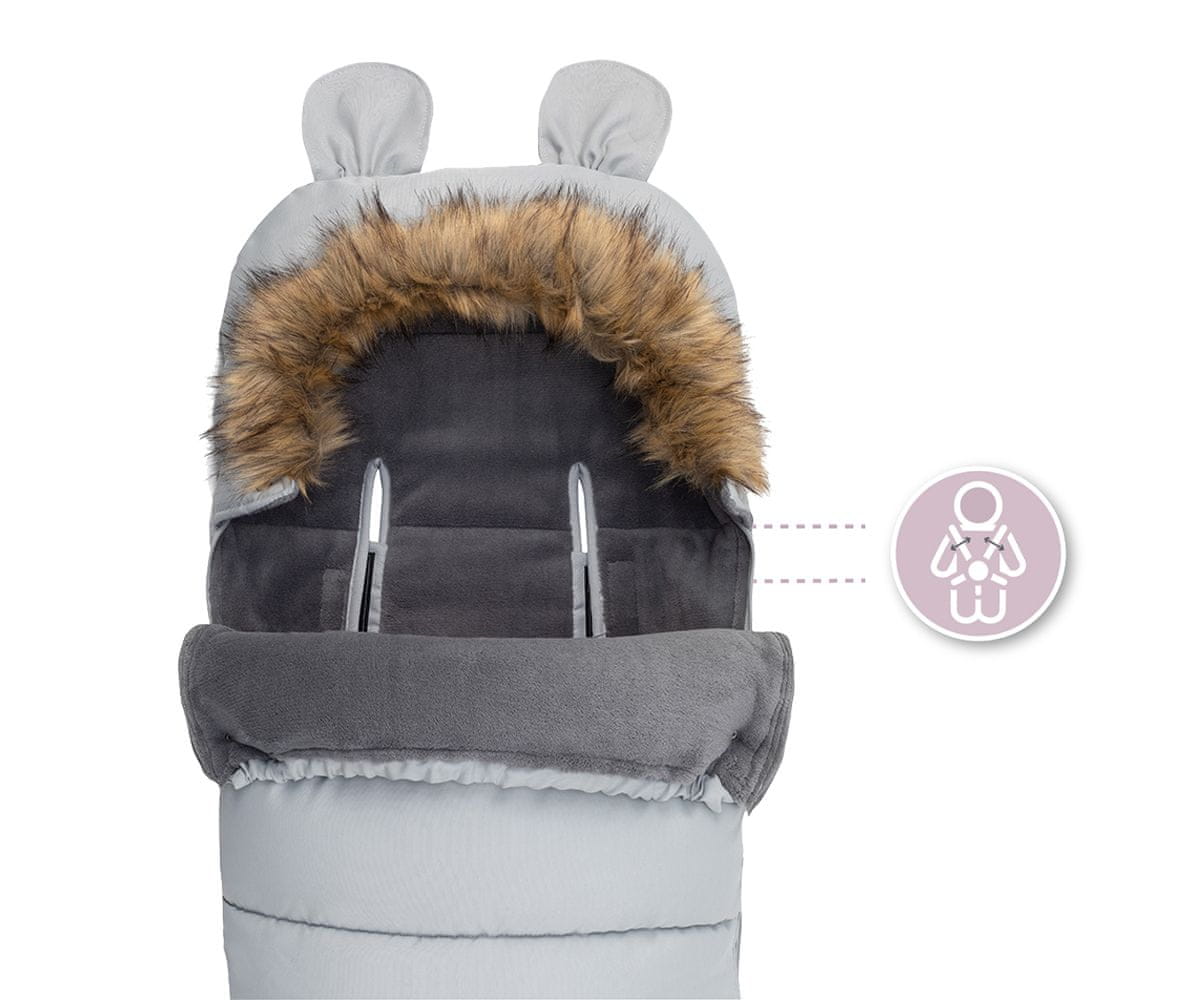 MoMi SLEEPING BAG vreća za spavanje, izo, vodootporna, zaštitna, univerzalnog oblika, krzno na skidanje, patentni zatvarač, otvori za pojas, 95x45cm, siva