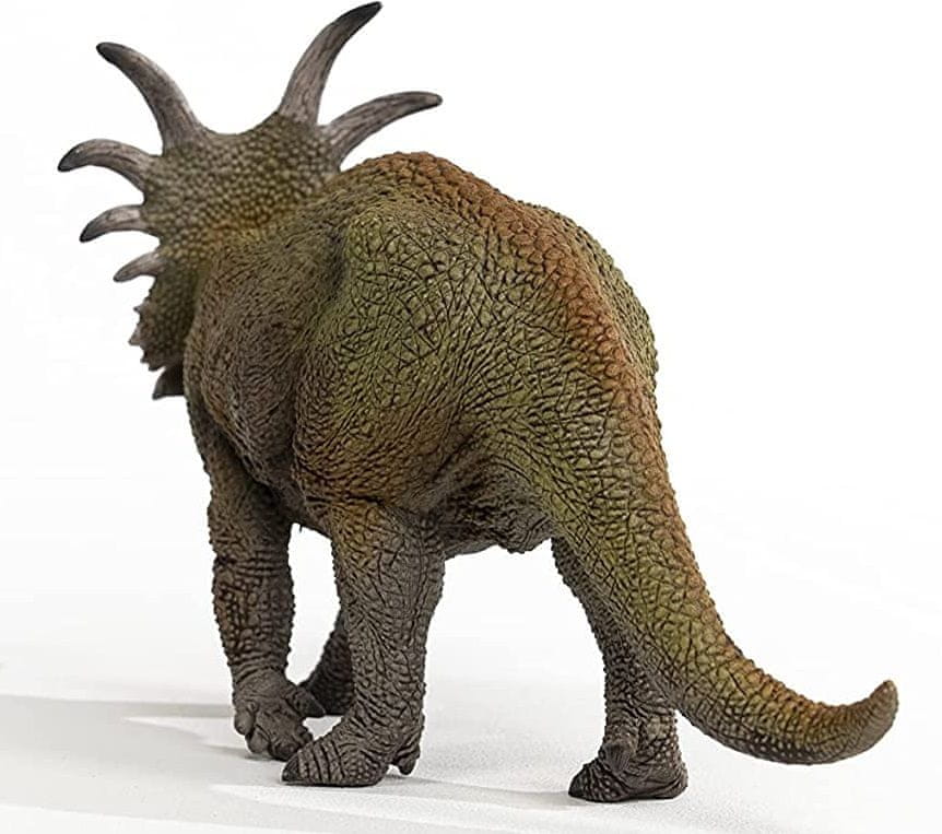 Styracosaurus iz kolekcije Schleich Dinosaurs voli loviti prstenove na svom divovskom rogu. S ustima nalik kljunu, može ih baciti ravno uvis. Njegov kljun ne prezire tvrde, vlaknaste biljke. Ovo stvorenje se štiti divovskim ovratnikom i ponekad dopušta svojim prijateljima dinosaurima da ga obojaju. Naravno da ga tada moraju oprati.
