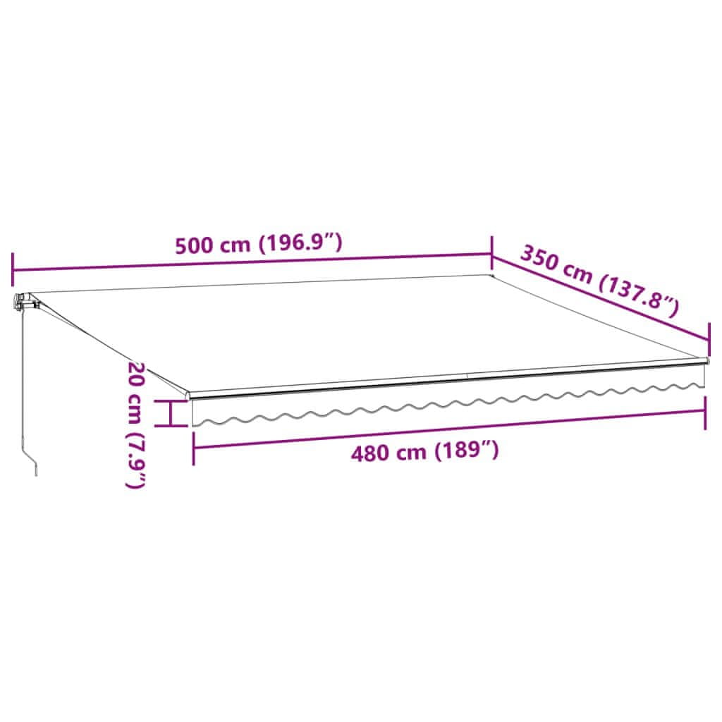 Vidaxl Tenda na ručno uvlačenje s LED smeđa 500 x 350 cm