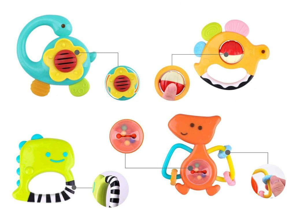 Set sadrži 5 različitih zvečki zapakiranih u šareno, lijepo i originalno pakiranje.