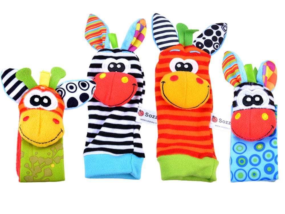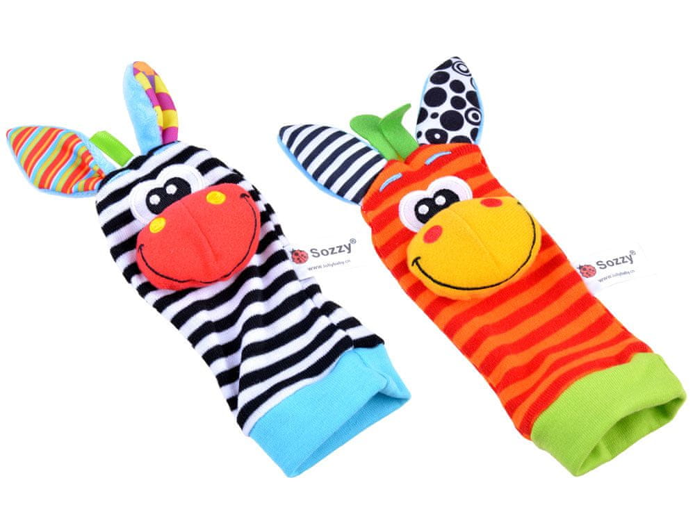 Zvečkasta čarapa stimulira više osjetila odjednom: vid, sluh i dodir. Lice životinje je potpuno izvezeno, tako da je potpuno sigurno za malu djecu. Zvečkica se može oprati i lako održavati čistom, što je velika prednost kod igračaka za najmlađu djecu.